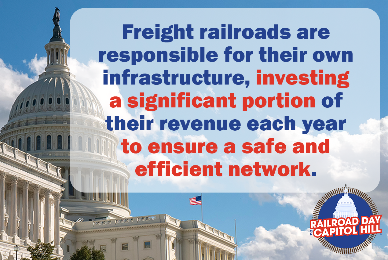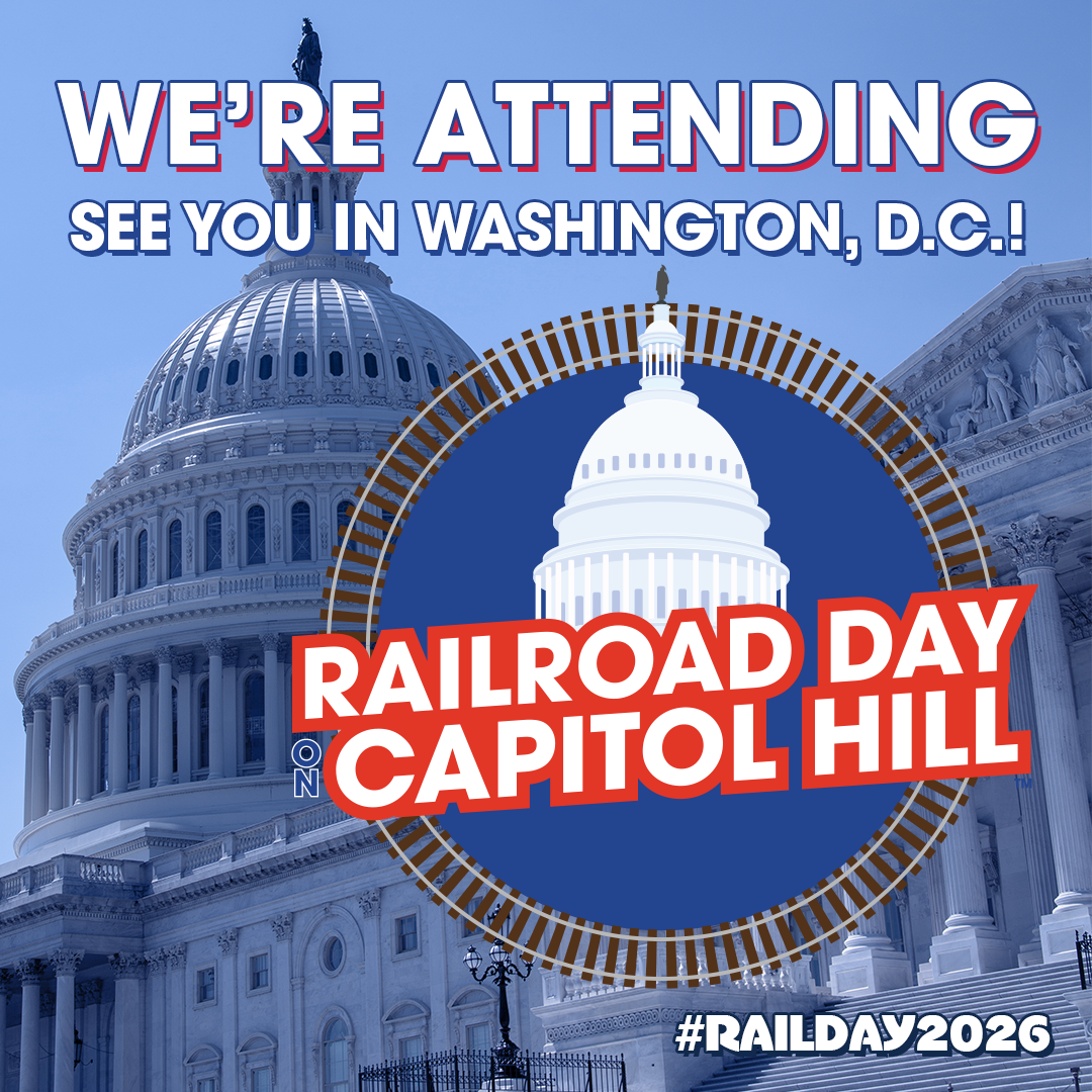 Are you a Railroad Day on Capitol Hill attendee who's not sure what to post? Were you unable to attend in-person but still want to engage and elevate the Railroad Day on Capitol Hill message? Use the graphics and post text examples below to customize and share a #RailDay2026 message.